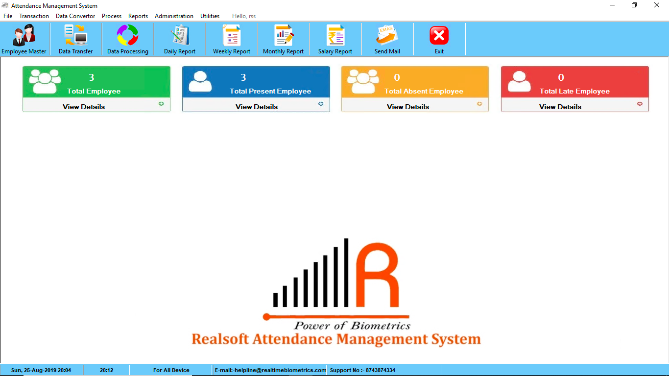 - Realsoft 10.9 or Realsoft SQL 11.0 for Attendance report and payroll purpose.